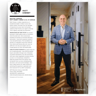 This recognition reflects the trust so many buyers, sellers, and referral partners place in me and the entire Cheney & Co. team. From luxury homes in McLean and Wesley heights to timeless properties in Chevy Chase, Georgetown, and beyond, we are committed to delivering the highest level of service, market knowledge, and guidance throughout every step of the real estate journey.